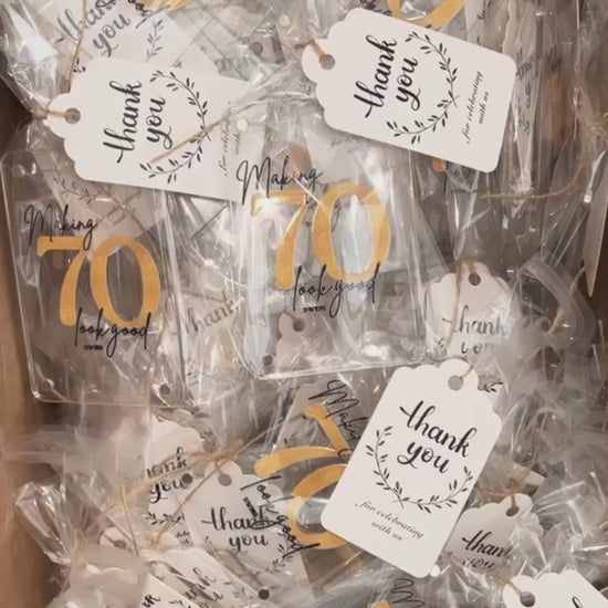 Celebrate life's milestones in style with our custom-designed acrylic magnet, proudly featuring the fun and fabulous phrase "Making 70 Look Good"! This delightful magnet is the perfect party favor for those special birthdays—whether you're honoring someone turning 30, 40, 50, 60, 70, or 80.