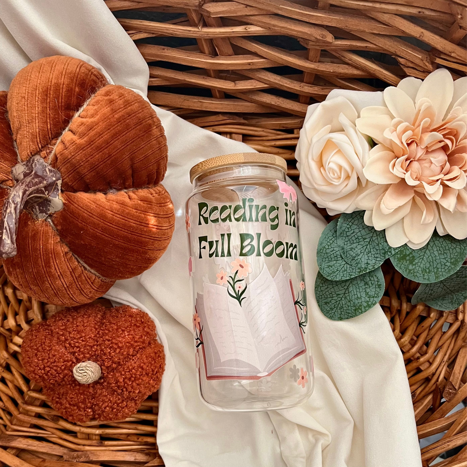 The Reading In Full Bloom Glass Tumbler is a stylish and functional drinkware piece that combines floral charm with everyday practicality for book lovers and beyond.