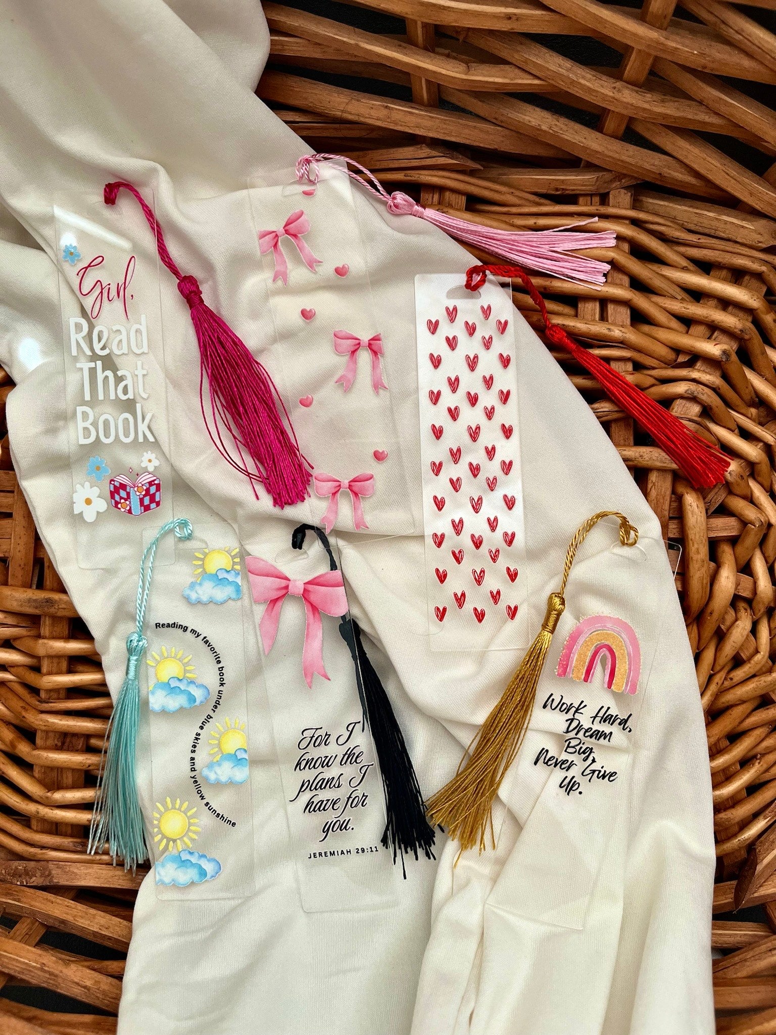 - One acrylic bookmark with a faith-based, motivational design or a cute design